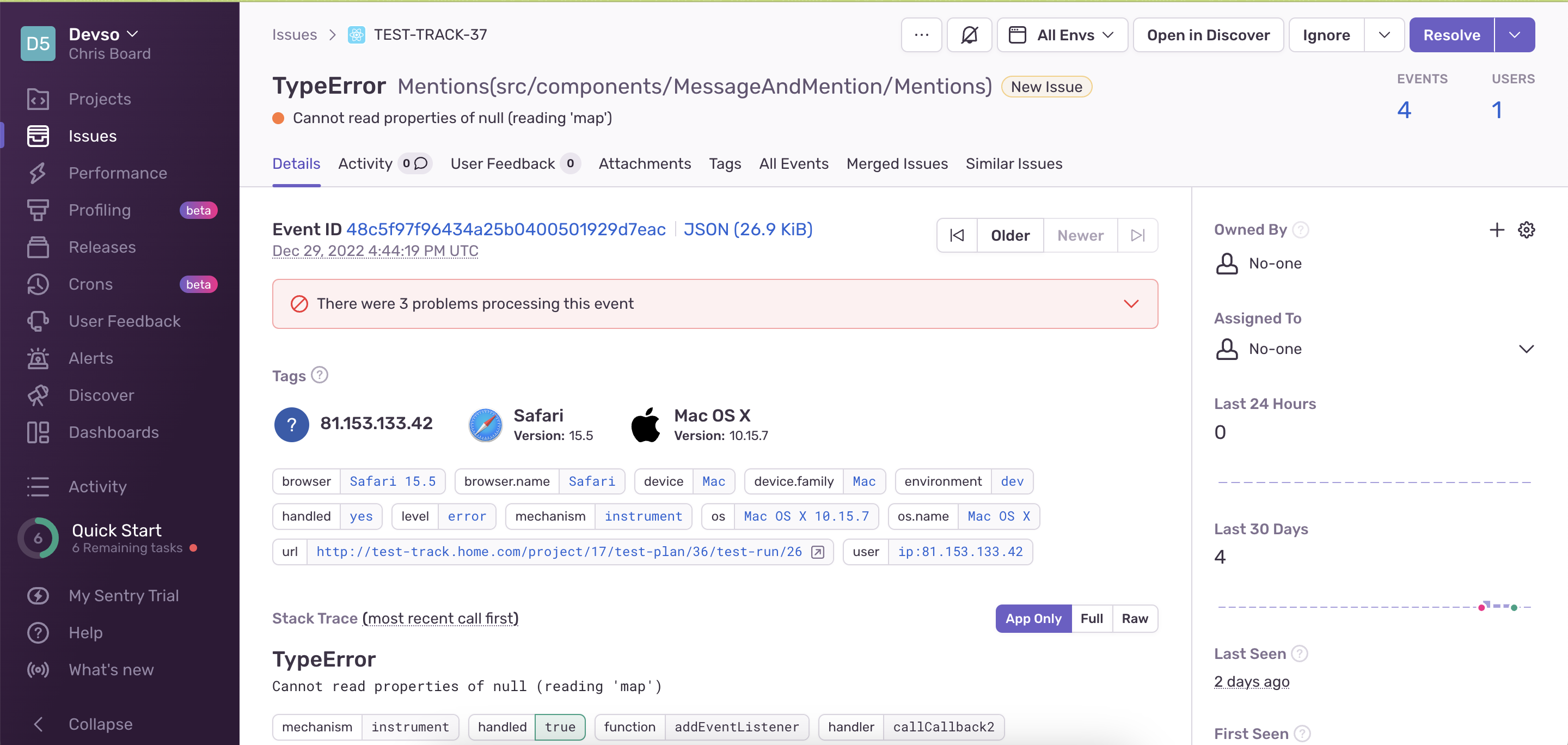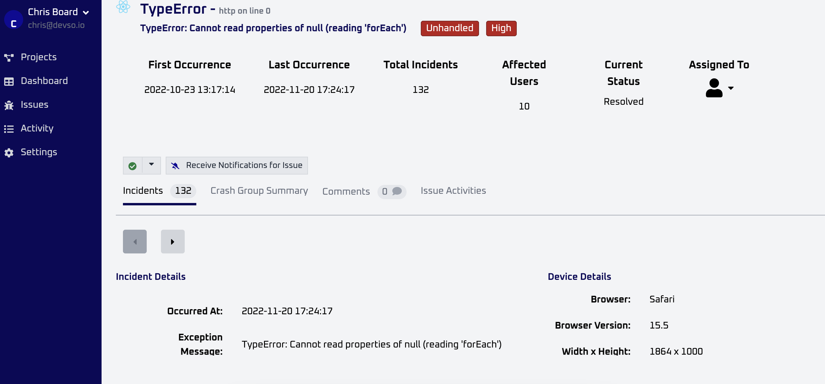 The other issue is around the ReactJS crash reports. In case you didn’t know, ReactJS when built for production is minified and therefore crash reports by default aren’t really that helpful. To get around that is a source map which provides information as to how the code was minified and the source map is uploaded to crash services such as Sentry or Crash Catch use the source map to decode the minified crash stack to a human readable form of the stack trace showing you exactly in your code where it crashed.