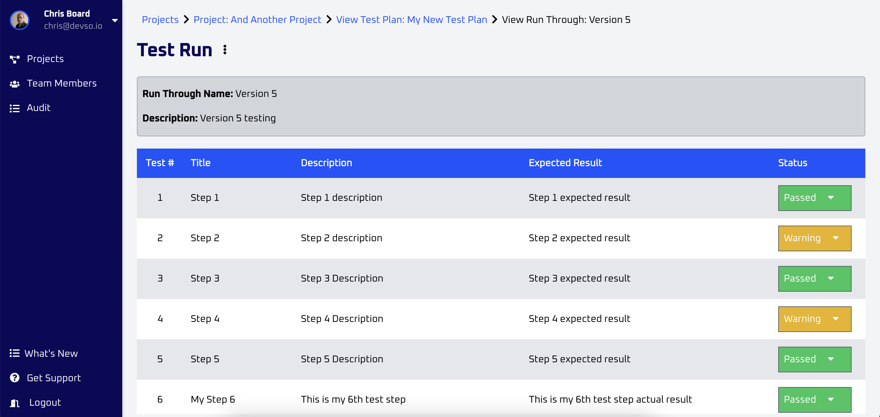 The idea is you create different projects, and within a project you create 1 or more test plans. A test plan can cover the entire project or split into different modules, such as frontend, backend, billing etc and each test step can be provided with detailed instructions and images to explain clearly to the testers what needs to be done and what is expected to happen. Then each test plan, you can trigger a test run where you can provide the state of each test step, and provide detailed description of went wrong so the developers have a clear and concise view of what the issue so they can fix it quickly as possible and make it available for retest.