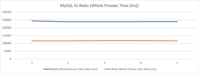 As you can see from the graphs above, using Redis to store and query the quota for each HTTP request, instead of doing it in the DB is a lot quicker, in fact, on average, over the 5 runs of each script that we did we saw a 51.4% reduction in both the whole process to complete and the time to store each record into the DB.